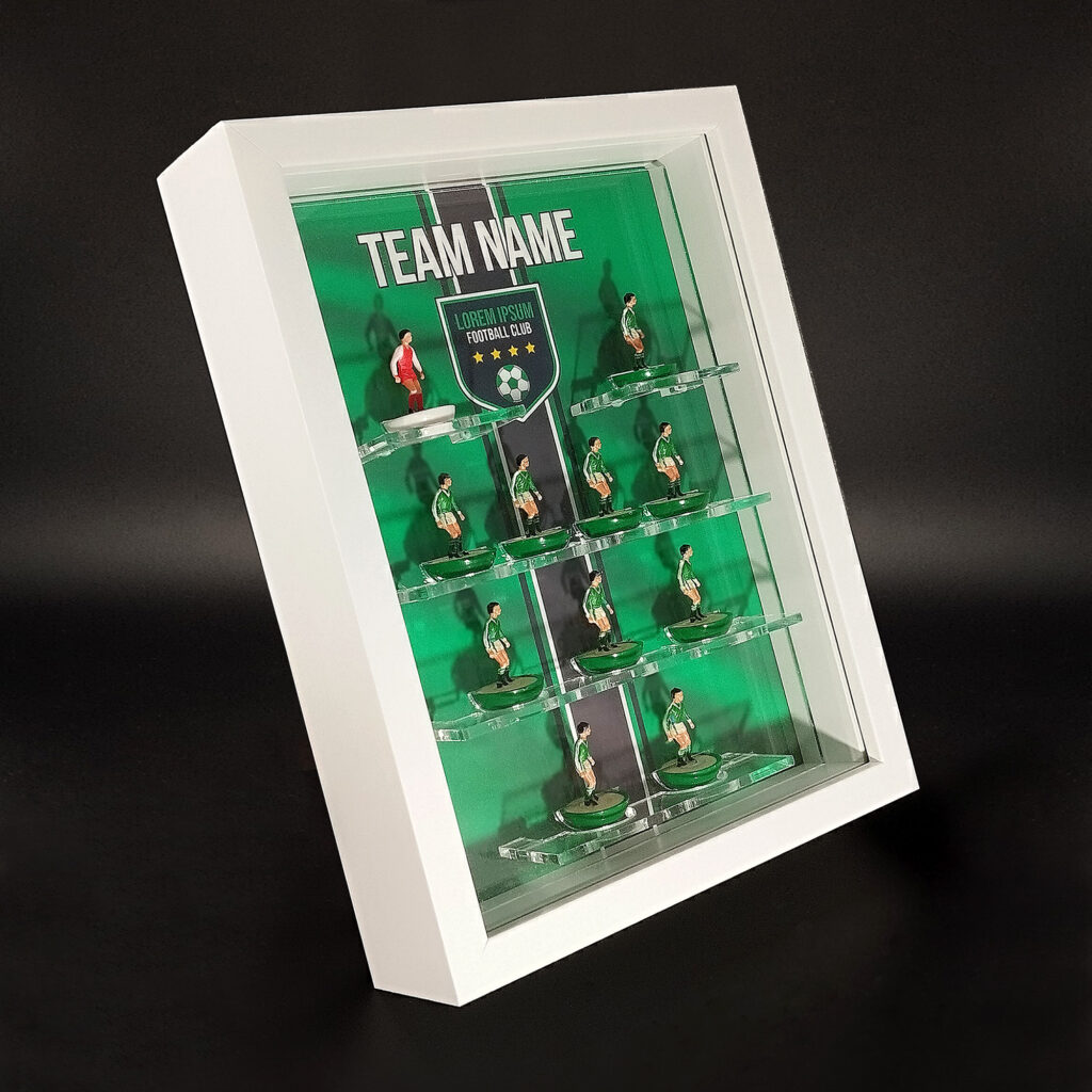 Se stai cercando il modo perfetto per esporre e proteggere le tue squadre Subbuteo, sei nel posto giusto! Il nostro negozio online offre una vasta selezione di supporti in plexiglass di alta qualità, progettati appositamente per gli appassionati di Subbuteo e di calcio.